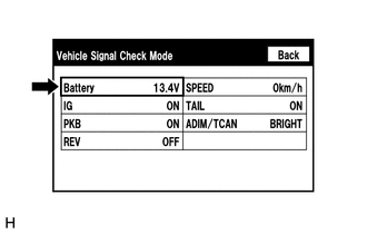 | (a) Sélectionner l'écran "Vehicle Signal Check Mode". Se reporter à la Vérification de signal du véhicule dans la Vérification du fonctionnement. Cliquer ici