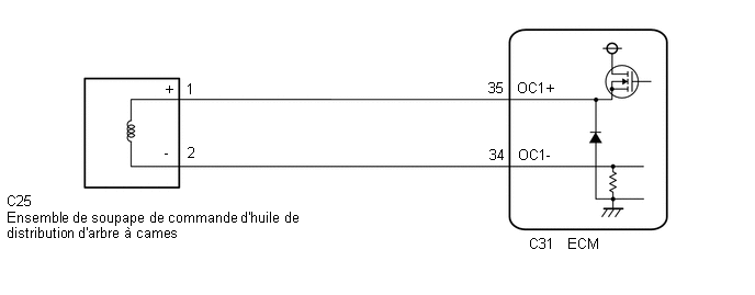 C25-1 (+) ou C31-35 (OC1+) - Masse de carrosserie et autres bornes |