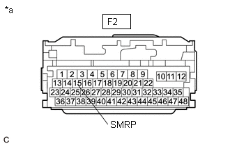 (c) Rebrancher le connecteur F2 de l'ECU de commande de véhicule hybride.