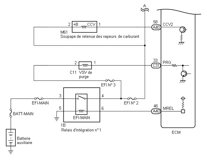 Coupure du circuit de soupape de purge "A" du système de recyclage des vapeurs de carburant (P044313)