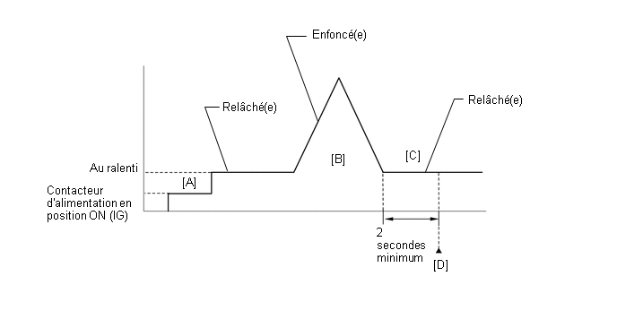 Pendant la commande de charge, le régime moteur est réglé au ralenti. Par conséquent, le régime moteur n'augmentera pas lorsque la pédale d'accélérateur est enfoncée. Dans ce cas, effectuer l'étape [B] après que la commande de charge s'est pas terminée.