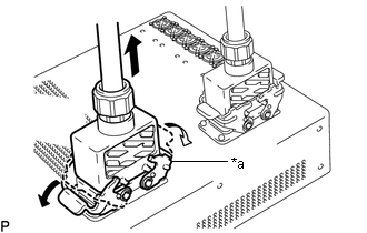 | (1) Débrancher les 4 connecteurs haute tension (oranges) de l'ensemble d'ECU de la batterie. |