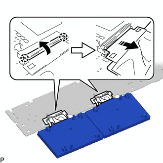(d) Libérer les 2 guides, puis débrancher le connecteur pour déposer le boîtier de combiné d'instruments n° 2 avec l'affichage multifonction du combiné d'instruments, comme indiqué sur le schéma.