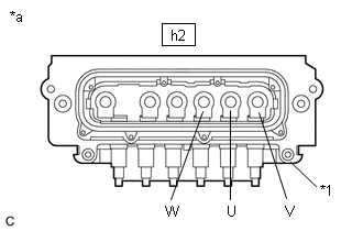 | (b) Débrancher le câble de moteur électrique de l'ensemble d'inverseur avec convertisseur. CONSEIL: S'assurer qu'il n'y a pas de corps étranger, de liquide de refroidissement ou d'eau dans l'ensemble d'inverseur avec convertisseur. |