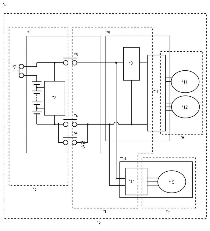 La résistance d'isolement de l'inverseur du générateur (MG1) et du moteur électrique (MG2), de l'inverseur d'A/C, du SMR ou du câble de compartiment moteur n° 2 a diminué.*2 (logique de détection à 1 cycle(s)) |