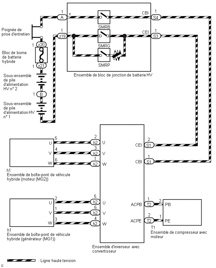 VERIFIER L'ENSEMBLE DE BOITE-PONT DE VEHICULE HYBRIDE (CABLE DE MOTEUR ELECTRIQUE (POUR MG2)) |