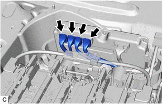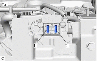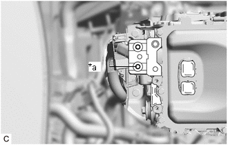 | (b) Débrancher le connecteur de câble de climatisation de l'ensemble d'inverseur avec convertisseur. CONSEIL: Veiller à ce qu'aucun corps étranger ne pénètre dans le câble de climatisation ou ne le contamine. |