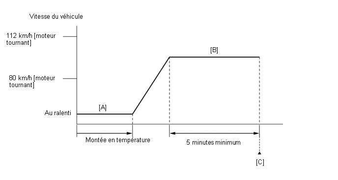 - Faire démarrer le moteur et le faire monter en température jusqu'à ce que la température du liquide de refroidissement du moteur soit de70°C (158°F) minimum [A].