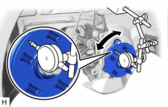 | (a) A l'aide d'un comparateur à cadran, vérifier s'il n'y pas de jeu à proximité du centre du moyeu d'essieu avant. Desserrage maximum: 0,05 mm (0,00196 po) REMARQUE: